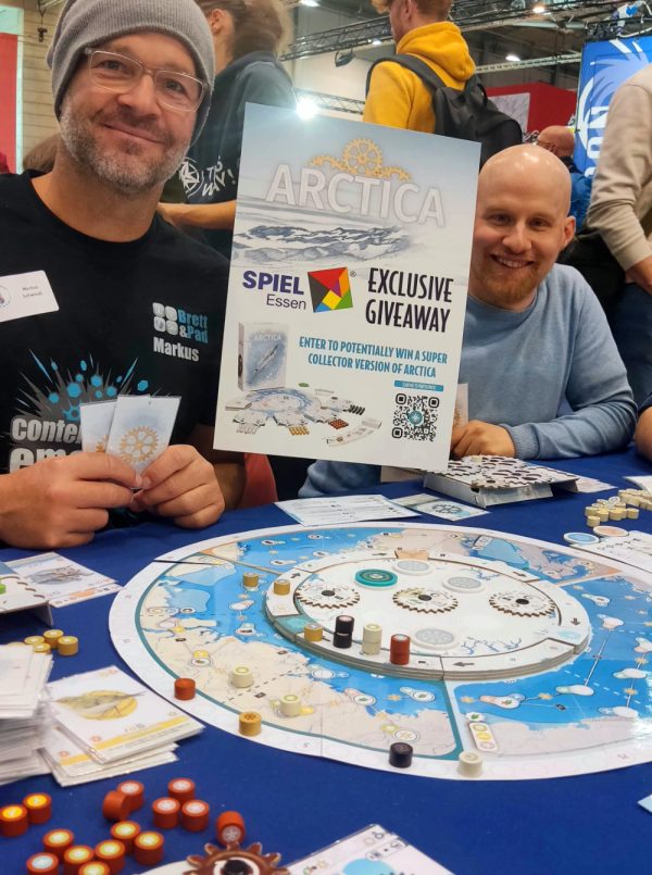 Hier will ich gar nicht so weit ausholen, weil ihr über die vielen Highlights ja ohnehin noch lesen werdet und Markus ja auch in die Tasten haut. Richtig stark war Arctica, welches im März 2026 auf Gamefound erscheinen soll. Mega-Optik, tolle Gadgets (Zahnräder) und mechanisch interaktiv und hoch verzahnt. Eine tolle Mischung aus Ressourcenmanagement wie in Wasserkraft mit seinem Ressourcenrad, dazu Kartenmanagement, bei dem Tiere coole Symbiosen eingehen und einem allzeit präsenten Area-Control-Konflikt um Habitate. Absolute Empfehlung! Richtig cool war auch Biathlon Blast. Das war ja eh schon einer meiner „Geheimtipps“ vor der SPIEL. Hey, am Ende haben es von uns vieren, die es gespielt haben, drei mitgenommen. Das ist auf jeden Fall eine Ansage der Begeisterung. Es ist ein etwas komplexeres Flamme Rouge, aber wunderbar angepasst auf den Biathlonsport. Wirklich hochgradig immersiv! Wie man hier am Berg abkotzen kann, großes Kino! Boss Fighters QR ist gerade für Familien der Oberknaller. Meine Kinder und ich konnten uns kaum vom taktischen Gemetzel lösen. Technisch fabelhaft umgesetzt, spielerisch sehr spannend. Und auch Tag Team hat mir sehr gefallen. Das ist trotz Autobattler-Mechanik, glaube ich, nach hinten raus tiefgründiger als gedacht.
