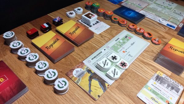 Ein kurzer Blick auf die vorzügliche und spannende Kartenmechanik. Multi-Use-Karten beherbergen immer ein Dilemma. Wofür spiele ich die Karte? Streite ich um Debatten? Zeige ich Präsenz in den Städten oder nutze ich das oft mächtige und einmalige Ereignis? Denn bei letzterem kommt die Karte häufig aus dem Spiel. Vorsicht vor blutbesudelten Spielbrettern, denn hier werden Lippen aufgekaut! Es kommt aber noch wilder.