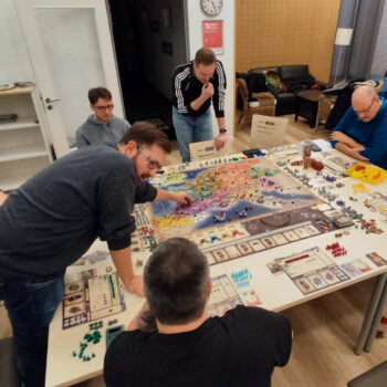 Der zweite Aspekt ist die Veränderung der Community und der Blick hinter die Brettspiele. Ohne den Blog wüsste ich niemals, wie es hinter den Kulissen von Verlagen aussieht. Der Blick des reinen Kunden wird geschwängert mit Wissen und Verständnis für viele andere Elemente rund um den Zirkus der Brettspiele. Und ohne den Blog würde ich wohl immer noch mit meinem kleinen Kreis an Freunden spielen. Kein offener Brettspieltreff, keine Brettspiel-WEs mit anderen Contentschaffenden, kein Meet & Play auf der SPIEL, kein Beeple-Netzwerk, kein Tag der Brettspielkritik und keinen Partner auf Medienevents. Und vor allem keine fremden Leute, die einen plötzlich freundlich anquatschen. Kein Element in meinem Leben hat mir so viele coole Bekanntschaften geschenkt, wie dieser Blog. Danke, Leute! Quatscht mich bitte weiter an, denn nur so werden wir zusammen spielen können.