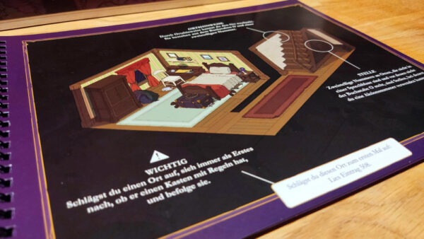 An dieser Stelle nun Props an Board Game Circus und ihren Einsatz auf ihrem Discord-Server. Gefühlt wird hier 24/7 geholfen und das auf wirklich coole und persönliche Art. Genial. Der größte Tipp ist aber folgender: Notizen machen. Selbst, wenn anfänglich gemeint wäre, etwas wäre banal. Witchbound fängt nicht in der Wildnis abseits des Dorfes an. Innerhalb des Dorfes lauert extrem viel. Der Fortschritt ist auch nicht linear über die Orte nach ihrer Erkundung verteilt. Nein, hier wird und muss hin und hergewandert werden. Hier in die Wildnis, dann ins Dorf, dort wieder ein Geheimnis lüften, dann mit einer Person sprechen, die eigentlich sehr früh bekannt ist, und wieder in die Wildnis. Die Reise in Witchbound ist enorm breit aufgestellt und selbst mit nur wenigen Aktionen übersieht man viel. Ohne Notizen gibt es definitiv einen Overload an Schlüsselwörtern, Orten und Personen. Plötzlich brach der Spielspaß durch. In Ruhe, ohne Hast, mit den Menschen sprechen, die Orte noch einmal genauer anschauen.