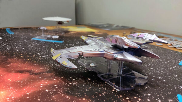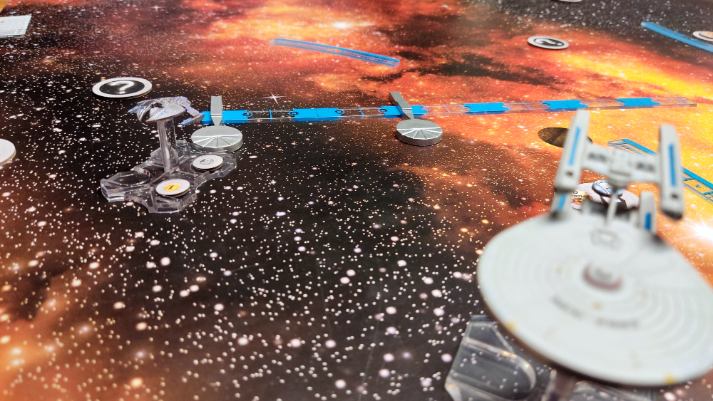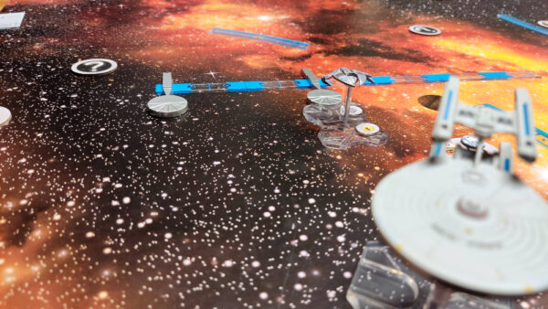 Nur bei einer Sache würde ich dir wirklich widersprechen wollen, vielleicht auch aus einer anderen Perspektive. Ich habe viele Tabletops mit Zollstäben gespielt und was die Bewegunsgfreiheit anbelangt, schlängt Star Trek X-Wing im taktischen wie strategischen Bereich um Längen. X-Wing ist mit seinen festen Schablonen nämlich ein Dodgefight auf Schienen. Das ist Star Trek hier nicht und das ist aus meiner Sicht richtig so. Es sind viel weniger agile Schiffe, die sich ganz anders bewegen als ein X-Wing. Der Tanz um Missionsziele, Reichweiten, Torpedos (die sich ja auch noch bewegen) und dabei dem Alarm- und Energiemanagement, ist ein langsamer Walzer, der mich zumindest extremst abgeholt hat. Absolute Freiheit. Ich schiebe aber auch seit ich 12 Jahre bin Miniaturen mit Zollstäben durch die Gegend.